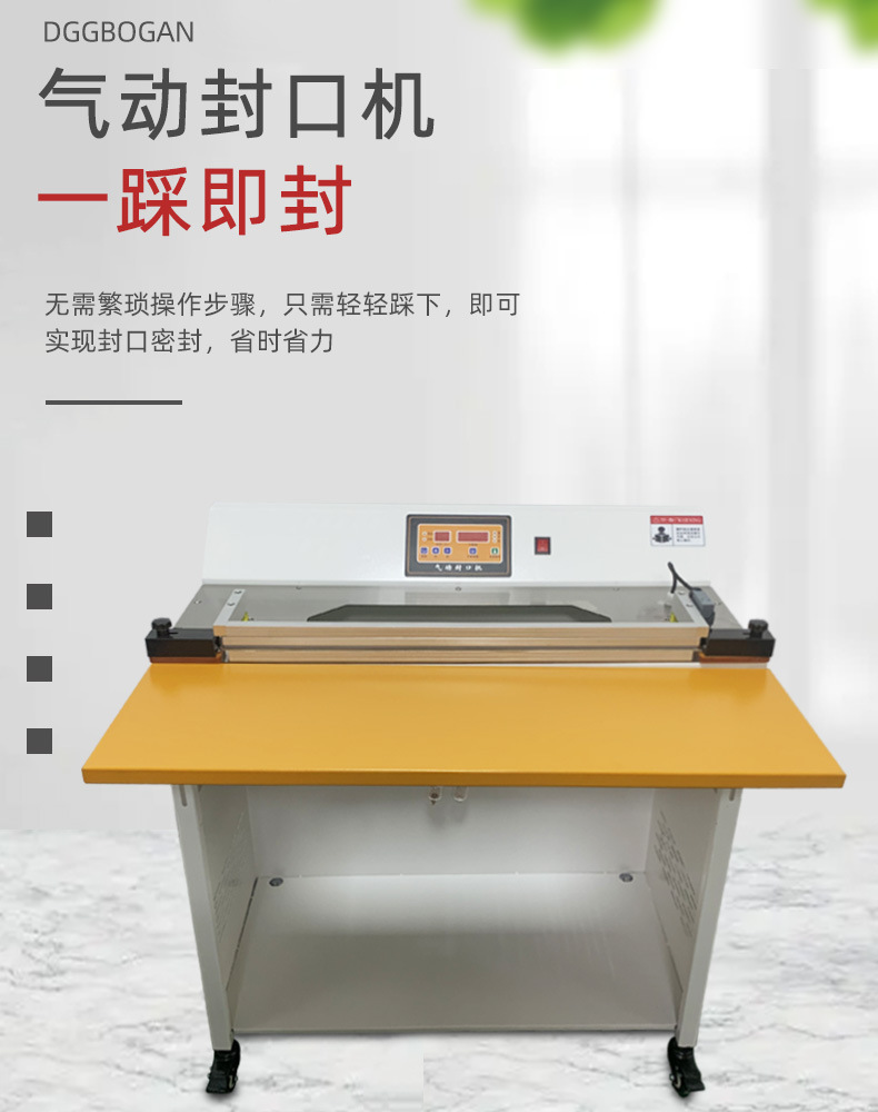 - 氣動封口機:動力來自壓縮空氣。它配備有氣動裝置,利用壓縮空氣驅動氣缸,氣缸的活塞運動帶動封口部件進行封口動作。壓縮空氣提供的動力比較穩定和強勁,能夠保證封口動作的一致性和高效性。