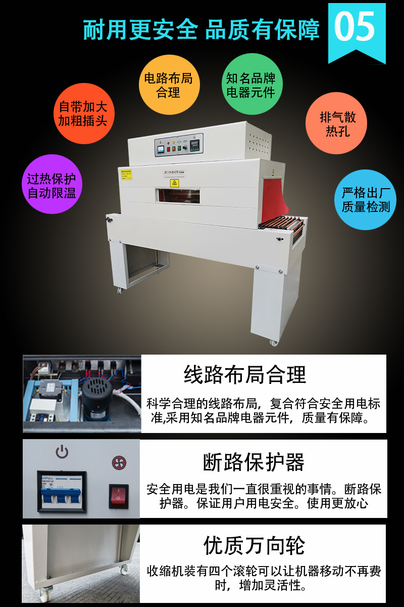2. 良好的包裝效果:收縮后的薄膜緊密貼合產品,外觀整齊美觀,能有效保護產品,防止灰塵、濕氣等外界因素的影響。