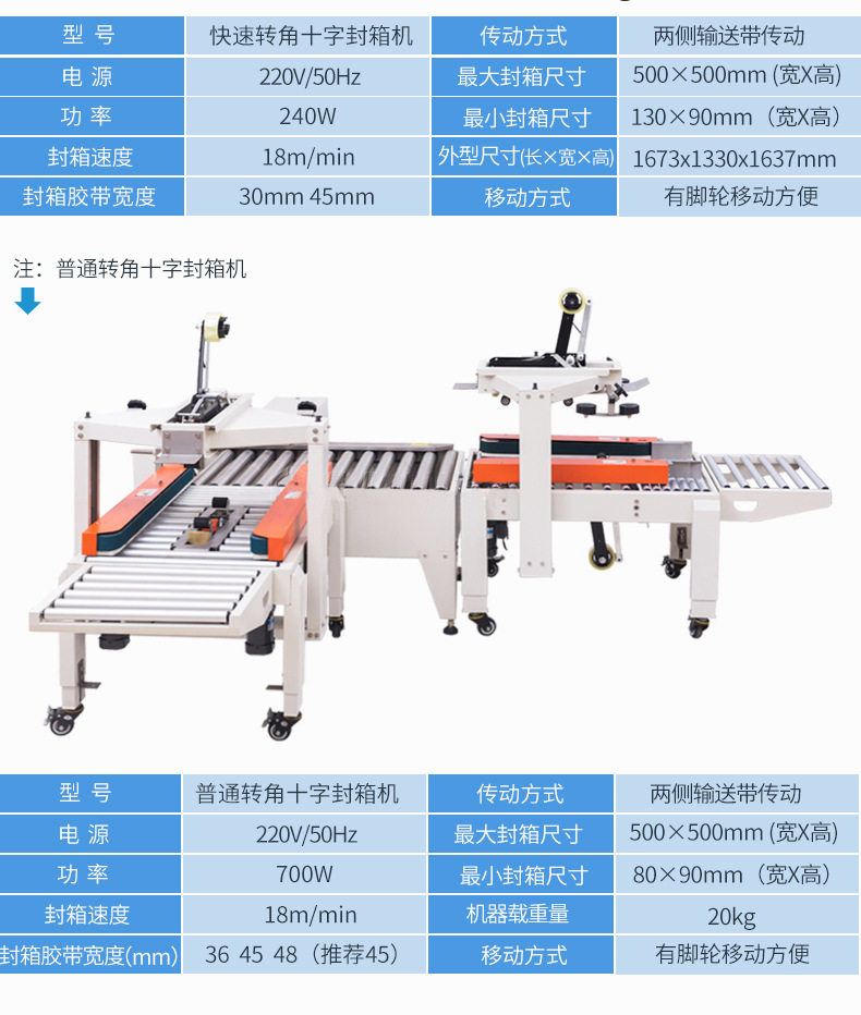 - 紙箱尺寸范圍:要明確自己日常需要包裝的紙箱尺寸范圍。在購買前,需要測量最小和最大紙箱的長、寬、高,然后選擇能夠覆蓋這個尺寸范圍的十字封箱機。有些封箱機可以通過調整部分裝置來適應不同尺寸的紙箱,但也有一定的限度。