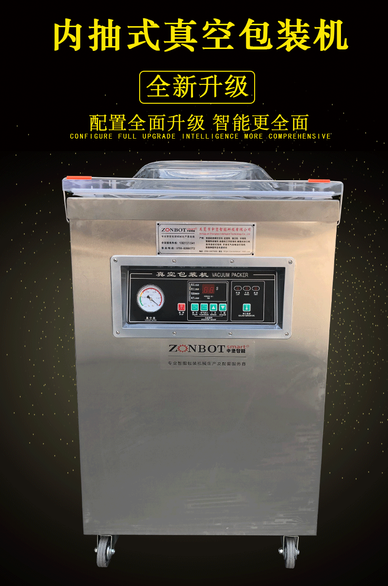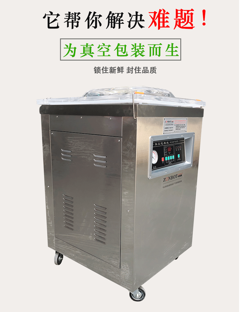 - 憑借精確的封口裝置,單室內抽真空包裝機可以制作出密封牢固、外觀整齊的封口。封口強度高,能夠承受一定的壓力和摩擦,在產品運輸和儲存過程中不會輕易漏氣。