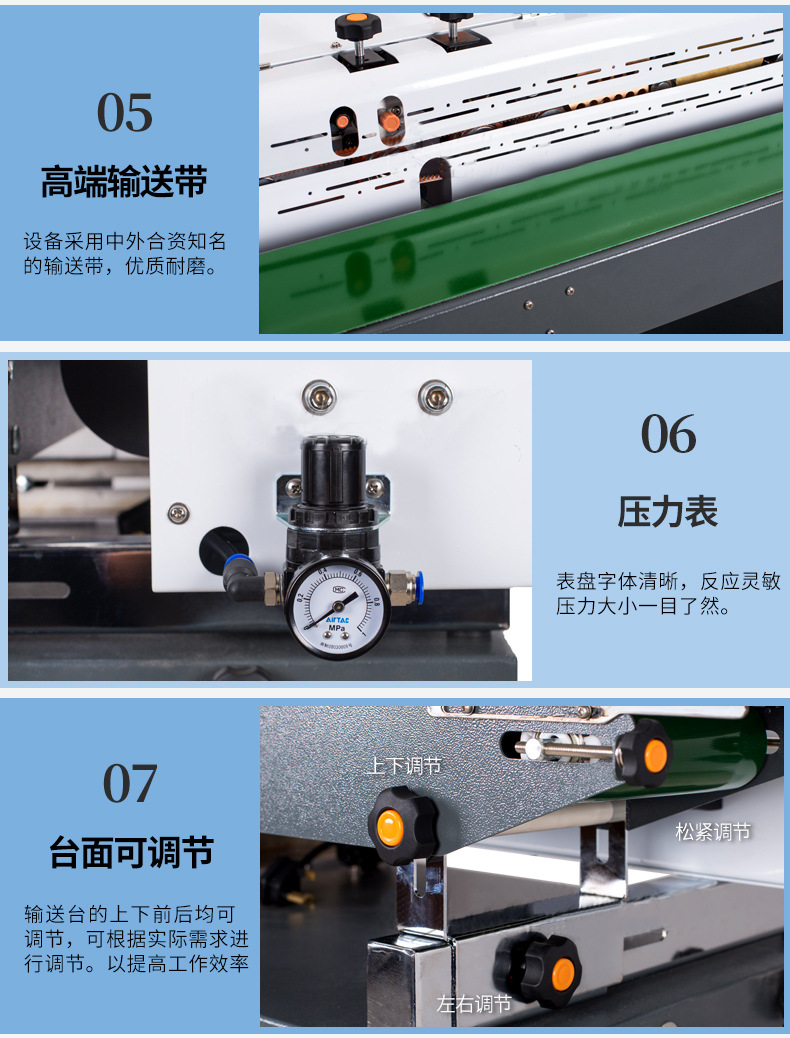 - 連續輸送系統:具備穩定且高效的輸送機構,如輸送帶、滾輪或鏈條等,確保產品能夠持續、平穩地通過抽真空和封口工位,實現連續包裝作業,提高生產效率。