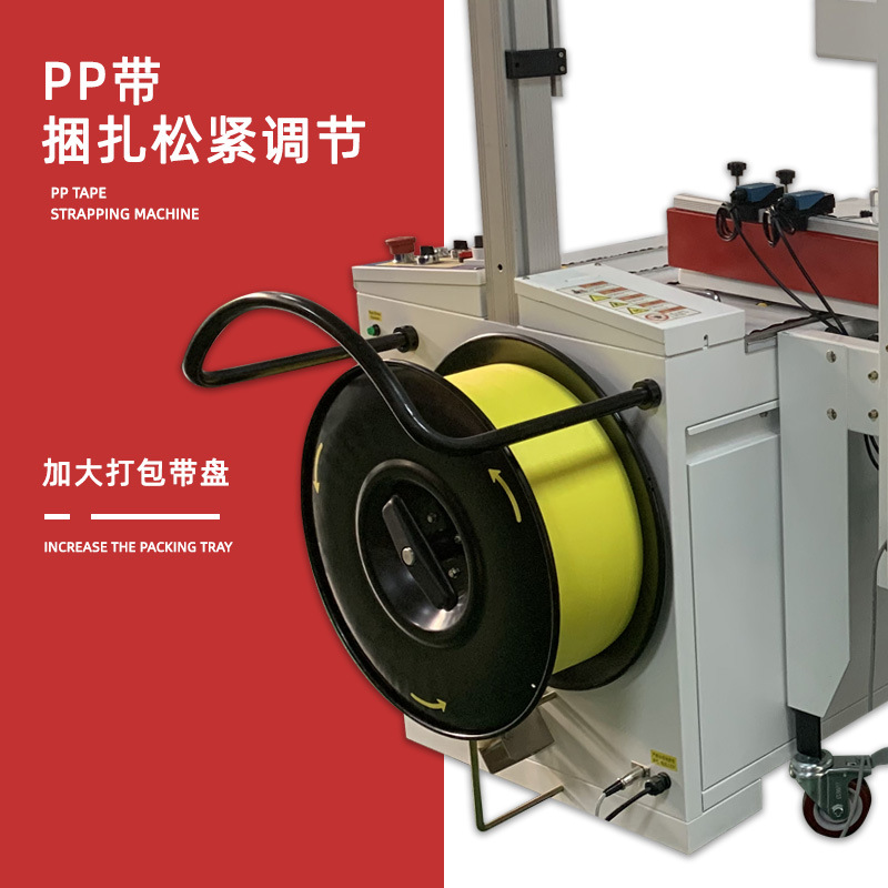 - 打包帶供給裝置:儲存有足夠長度的打包帶,通常是成卷放置。在打包過程中,打包帶會從卷上被抽出并輸送到工作區域。打包帶的材質多樣,有塑料打包帶、鋼帶等,不同的材質適用于不同重量和類型的產品包裝。