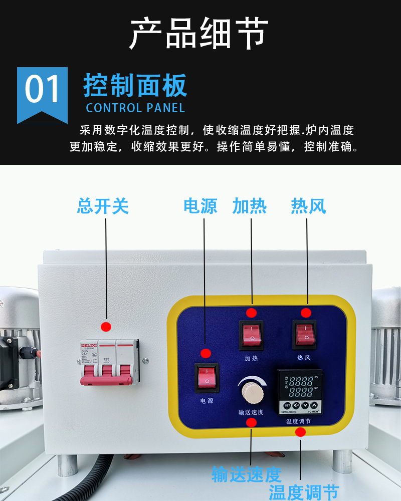 這種收縮包裝機(jī)它選用石英管加熱的辦法,通過遠(yuǎn)紅外管加熱的辦法,不只能夠在作業(yè)時能接二連三的發(fā)生紅外線輻射進(jìn)行高溫加熱,再協(xié)作健旺的風(fēng)力循環(huán),使得加熱室的溫度變得更加的均勻,一同還能為廠家節(jié)約電能。