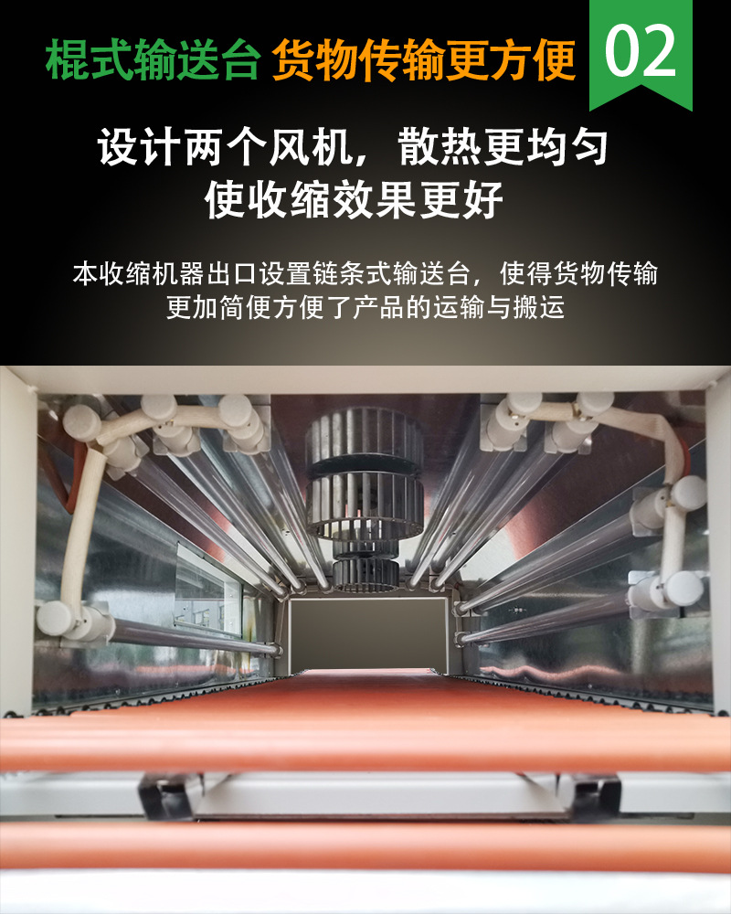 熱收縮機被廣泛應用于玻璃瓶、發泡膠、紙盒、玩具、電子、電器、文具、圖書、唱片、五金工具、日用品、藥品、化妝品、飲料、水果、紀念標簽等物品包裝。 還有就是一種餐具收縮機(餐具包裝機),專門用于餐具的熱收縮,此餐具收縮機設備特別適用于餐飲餐具、軟件、印刷品、餅干、制藥、陶瓷、飲料及地板等行業的大批量熱收縮膜成型包裝。 專為啤酒、飲料、純凈水、果汁、乳制品等飲品的全自動包裝生產線設計。具有輸送進料、理瓶、裹膜、封切、收縮、冷卻定型等流程的全自動化功能。
