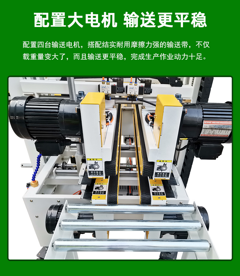 主要適用于紙箱的封箱包裝,既可單機作業(yè),也可與流水線配套使用,它可單箱作業(yè),也可與紙箱成型開箱機、裝箱機、貼標機、捆包機、棧板堆疊機、輸送機等設備配套成包裝流水線使用,為包裝流水線作業(yè)必須的設備。封箱機為錦岸代理產品主要分為:自動拆蓋封箱機系列,氣動調整封箱機系列,自動封箱機系列,邊角式封箱機系列,四角邊封箱機,工字型封箱等,封箱方式可分為:上下驅動,左右驅動,側邊,角邊等,一般采用透明膠帶以及牛皮紙材料。