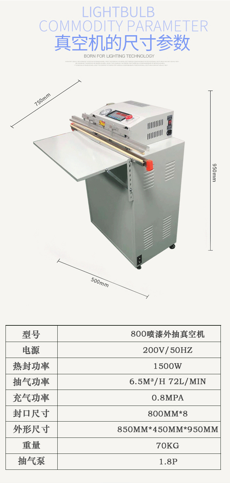 • 機(jī)身和支架:機(jī)身一般采用金屬材質(zhì),如不銹鋼或鋁合金,以確保機(jī)器的穩(wěn)定性和耐用性。支架用于支撐和固定各個(gè)部件,同時(shí)也方便機(jī)器的放置和移動(dòng)。有些外抽真空包裝機(jī)還配備了腳輪,便于在車間或倉庫等場(chǎng)所移動(dòng)使用。