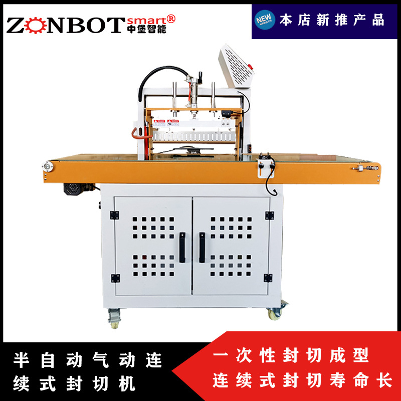 4. 封切裝置:這是連續式封切機的核心部件之一,主要由加熱元件、壓力裝置、封切刀等組成。加熱元件用于對薄膜的封口部位進行加熱,使其達到合適的溫度,常見的加熱元件有電熱絲等;壓力裝置則在加熱后施加一定壓力,促使薄膜相互粘結融合,完成封口;封切刀的形狀根據封切方式而定,可為橫向或縱向的直刀,也可為能同時進行橫縱封切的特殊形狀刀具,在封切過程中起到關鍵作用。