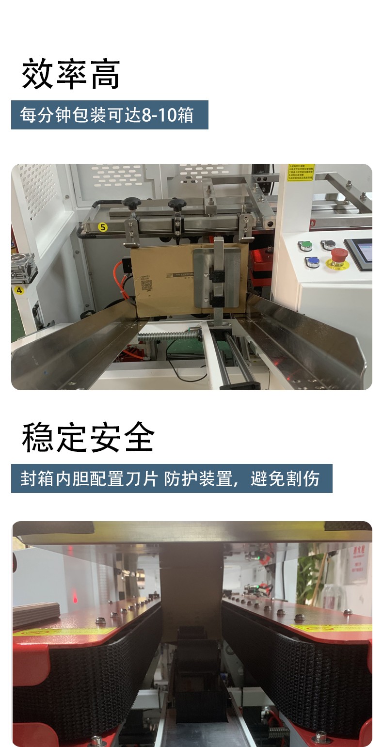 高效自動化:可大大提高生產效率,減少人工操作,節省時間和人力成本。例如,高速自動開箱封底機每小時可處理幾百甚至上千個紙箱 。 操作精準:準確的感應和定位系統能夠確保箱子的準確開啟和封閉,保證每個紙箱的形狀和封底質量都符合標準,避免漏貼和錯位等問題 。 智能調節:智能控制系統可根據不同箱子尺寸進行自動調節,適用范圍廣,能處理各種規格的紙箱 。 安全可靠:避免了人工開箱可能帶來的安全風險,如刀具劃傷等,同時設備配備了多重安全保護裝置,保障操作人員和設備的安全 。 易于操作維護:設計人性化,操作簡單方便,非專業