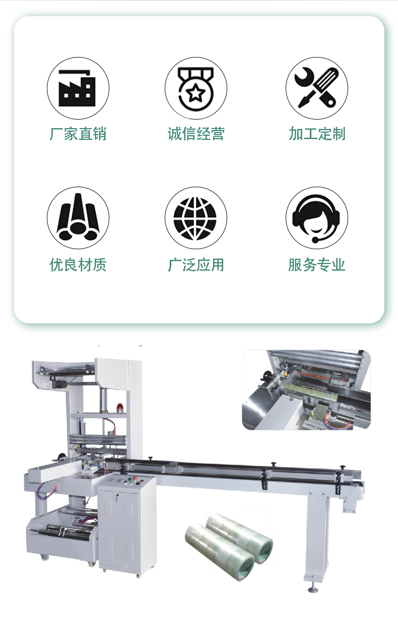 - 包裝質量好:由于采用了精確的機械裝置和自動化控制,包裝的封口嚴密,貼標位置準確。包裝后的膠帶卷外觀整齊、美觀,能夠提升產品的市場競爭力。而且機器能夠保證包裝的一致性,每一個膠帶卷的包裝質量都能達到較高的標準。