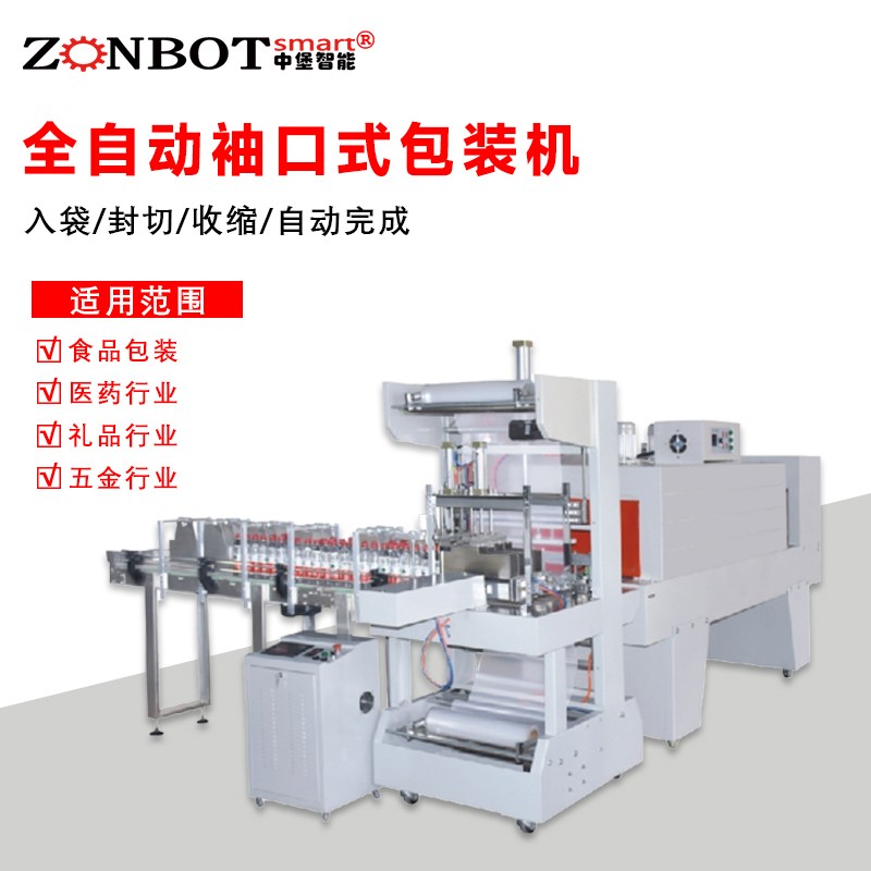 全自動袖口式包裝機是一款集自動化、高效性與精準度于一體的先進包裝設(shè)備,在眾多行業(yè)的產(chǎn)品包裝流程中發(fā)揮關(guān)鍵作用。 一、工作原理 它依托先進的機械設(shè)計與控制系統(tǒng)協(xié)同運作。首先,包裝材料,通常是成卷的塑料薄膜,從放卷裝置平穩(wěn)送出,經(jīng)一系列導(dǎo)向輥拉伸展開呈筒狀。此時,待包裝產(chǎn)品由輸送帶按照預(yù)設(shè)節(jié)奏精準推送至已成型的包裝筒內(nèi)。隨后,機器通過機械抓手或折疊裝置對筒狀包裝材料的上下兩端進行巧妙折疊,形成類似 “袖口” 的形狀,再利用熱封技術(shù),使加熱元件將折疊部分的薄膜熔化并黏合,完成封口,最終輸出包裝好的成品。整個過程