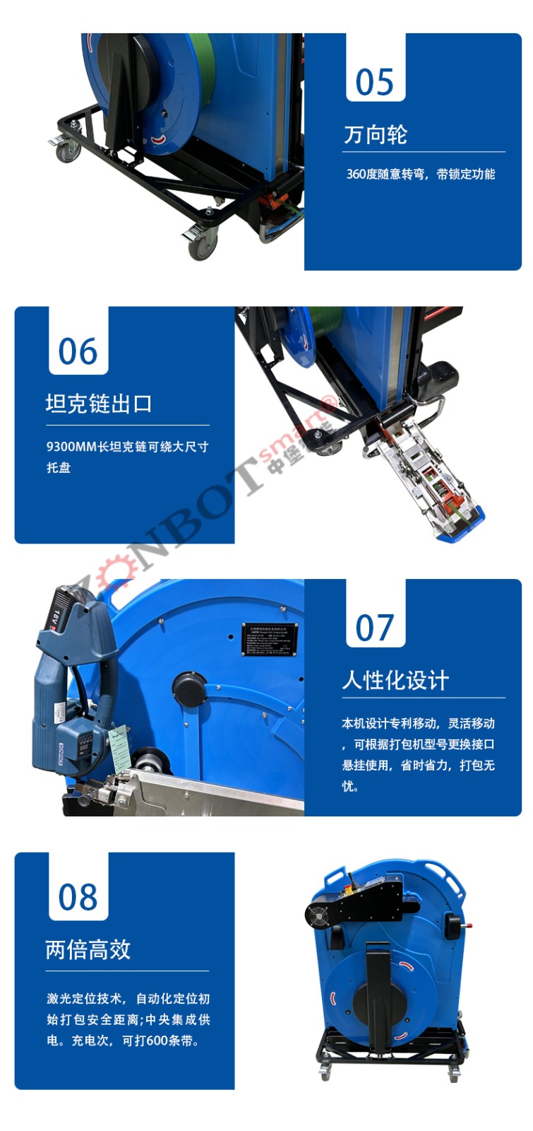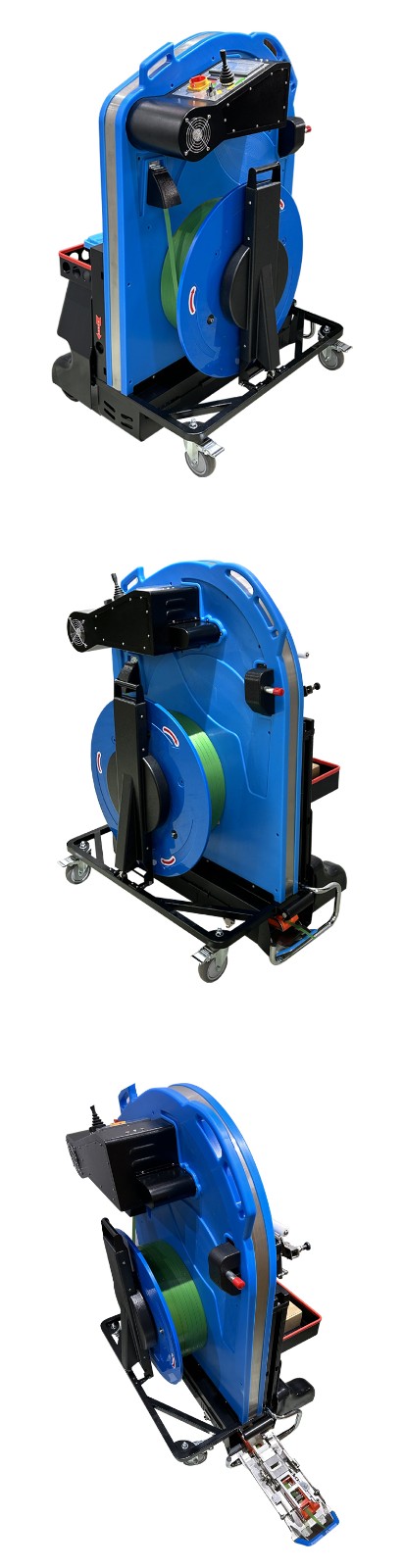• 導(dǎo)向系統(tǒng):由多個(gè)導(dǎo)向輪和導(dǎo)軌組成。導(dǎo)向輪一般是可以靈活轉(zhuǎn)動(dòng)的滾輪,它們可以根據(jù)打包帶的寬度和穿帶路徑進(jìn)行調(diào)整。導(dǎo)軌則是為打包帶提供了一個(gè)固定的通道,確保打包帶沿著預(yù)定的路線行進(jìn)。比如,當(dāng)打包帶需要轉(zhuǎn)彎時(shí),導(dǎo)向輪會(huì)將其引導(dǎo)到合適的軌道上。