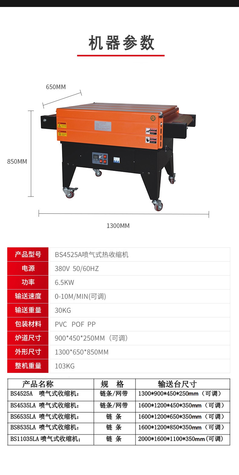 - 包括輸送帶和驅動電機等部分。輸送帶用于將產品平穩地輸送通過熱空氣噴射區域,其速度可以調節。這樣可以根據不同的包裝速度要求和產品尺寸來控制產品在機器中的停留時間。例如,對于較小的產品,如糖果,可以加快輸送帶速度,提高包裝效率;而對于較大的產品,如家電產品的配件,輸送帶速度可以適當減慢,以保證薄膜有足夠的時間進行收縮。