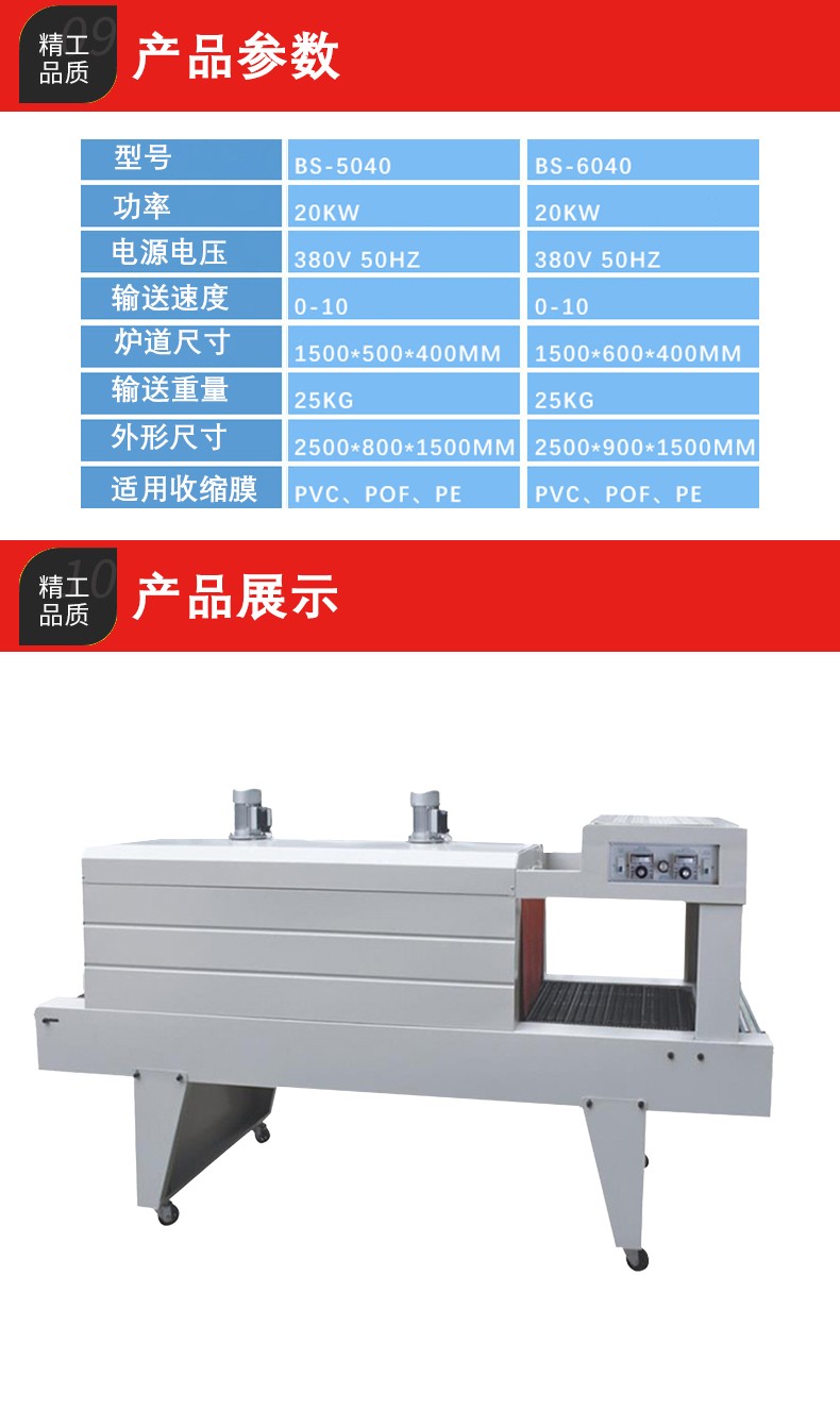 主要包括輸送帶和驅(qū)動電機(jī)。輸送帶用于承載并輸送被 PE 薄膜包裹的產(chǎn)品通過加熱區(qū)域。驅(qū)動電機(jī)控制輸送帶的速度,這個速度是可以調(diào)節(jié)的。其重要性在于確保產(chǎn)品在加熱區(qū)域停留足夠的時間,讓 PE 薄膜充分收縮。例如,如果輸送帶速度太快,PE 薄膜可能來不及完全收縮就離開了加熱區(qū)域,導(dǎo)致包裝質(zhì)量不佳;如果速度太慢,又會影響包裝效率。