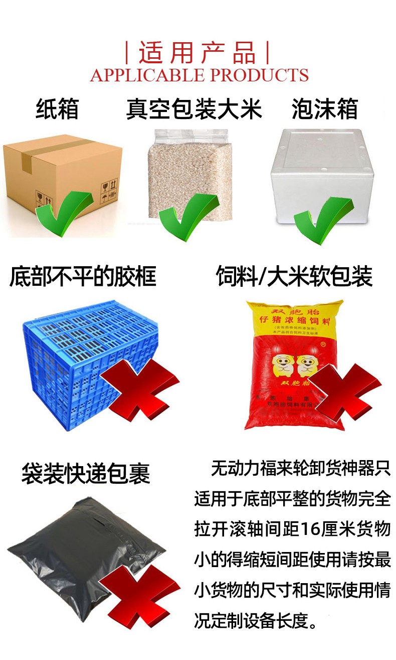 • 不適用于所有貨物:如果貨物底部摩擦力過小或者表面過于光滑,在無動力滾輪輸送機上可能無法有效滾動,需要借助外力或者特殊裝置輔助。對于一些軟質(zhì)、易變形的貨物,滾輪可能會對其造成損壞。