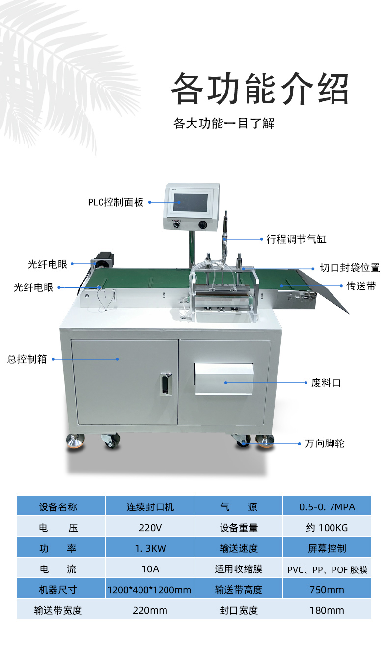 • 適應(yīng)性強(qiáng):可以通過調(diào)整封切參數(shù)和更換不同規(guī)格的輸送帶、封切刀等部件,適應(yīng)不同尺寸、形狀和材質(zhì)的產(chǎn)品包裝需求,具有較高的靈活性和通用性。
