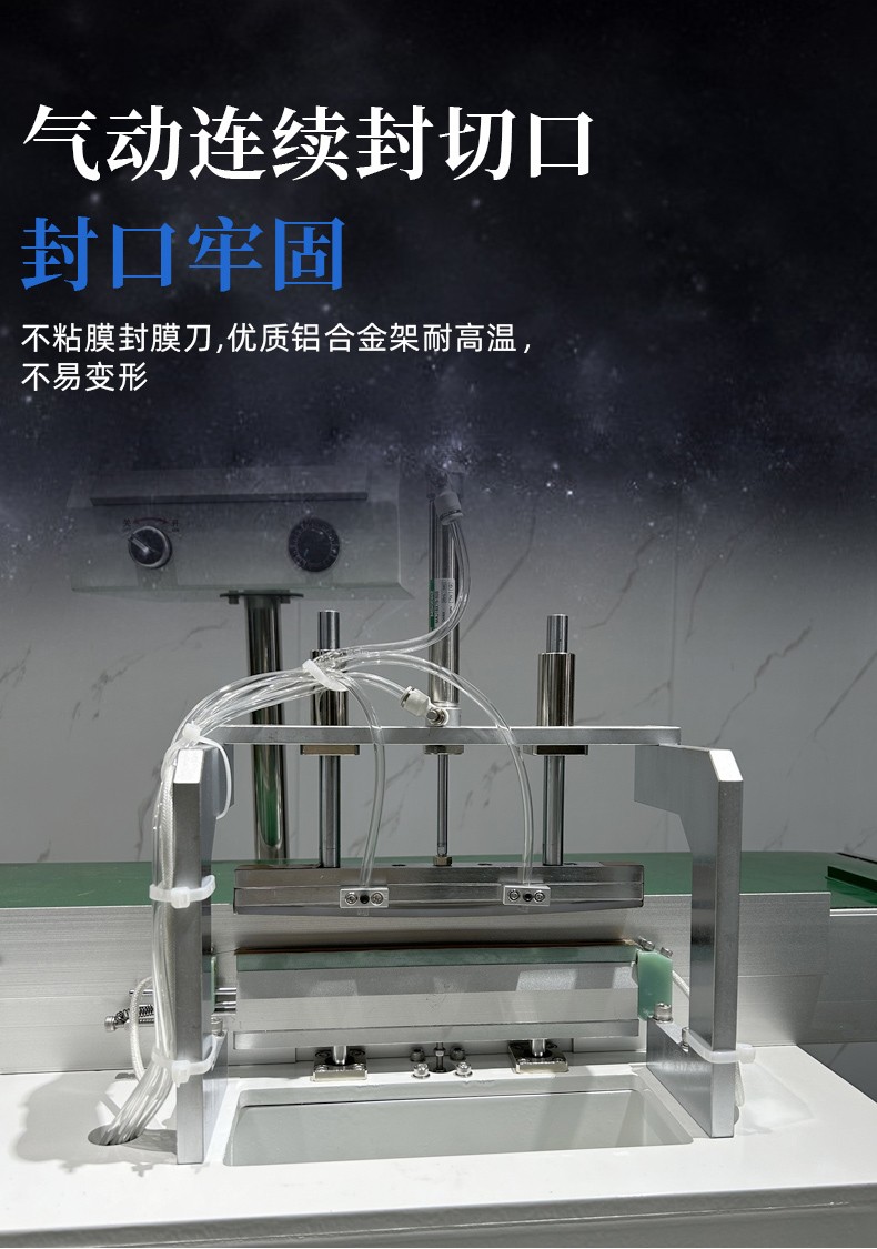 • 高速連續(xù)作業(yè):采用氣動(dòng)驅(qū)動(dòng)和連續(xù)輸送的方式,能夠?qū)崿F(xiàn)快速的封切操作,并且可以連續(xù)不斷地對物品進(jìn)行包裝,生產(chǎn)效率高,適用于大批量產(chǎn)品的包裝生產(chǎn)線。