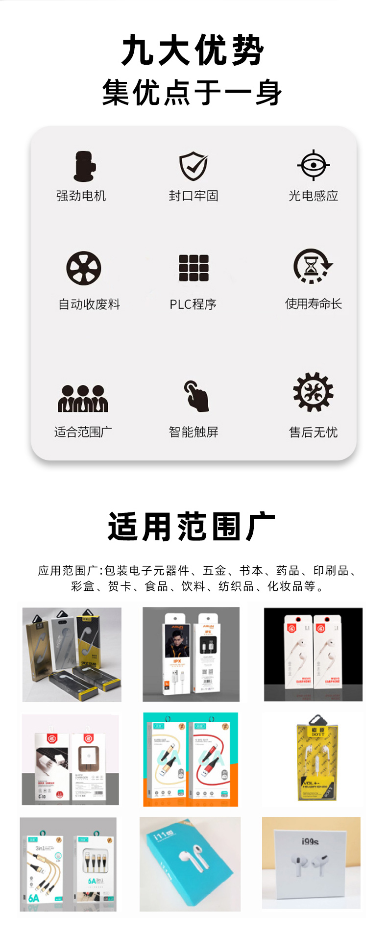 • 電子電器行業(yè):可用于電子元器件、小型電器產(chǎn)品等的包裝,在保證包裝效率的同時(shí),能有效保護(hù)產(chǎn)品在運(yùn)輸和儲(chǔ)存過程中不受損壞。