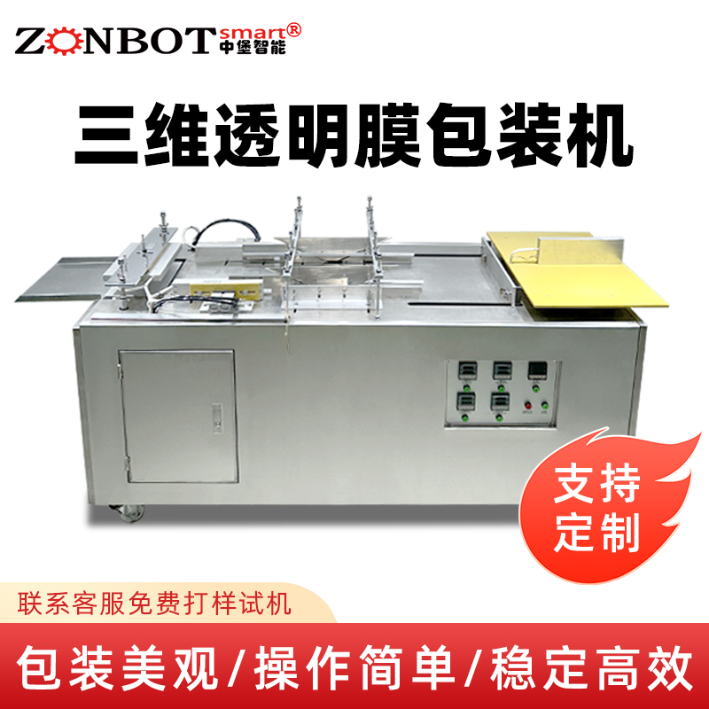 半自動三維透明膜包裝機(又稱半自動透明膜裹包機、半自動煙包機)是醫藥、食品、日化等行業常用的包裝設備,核心功能是通過BOPP 透明膜(或含鋁箔的復合膜) 對產品進行三維立體裹包,形成類似香煙盒外層的緊致、透明(或半透明)包裝,兼具防塵、防潮、防偽及提升產品外觀檔次的作用。其 “半自動” 特性主要體現在需人工輔助上料,后續裹膜、封切、折邊等核心工序自動完成。 一、核心工作原理 設備通過 “膜料供送→人工上料定位→膜料裹覆→熱封切邊→折邊定型→成品輸出” 的流程,實現產品的三維膜包裝,具體步驟如下: 膜料準備