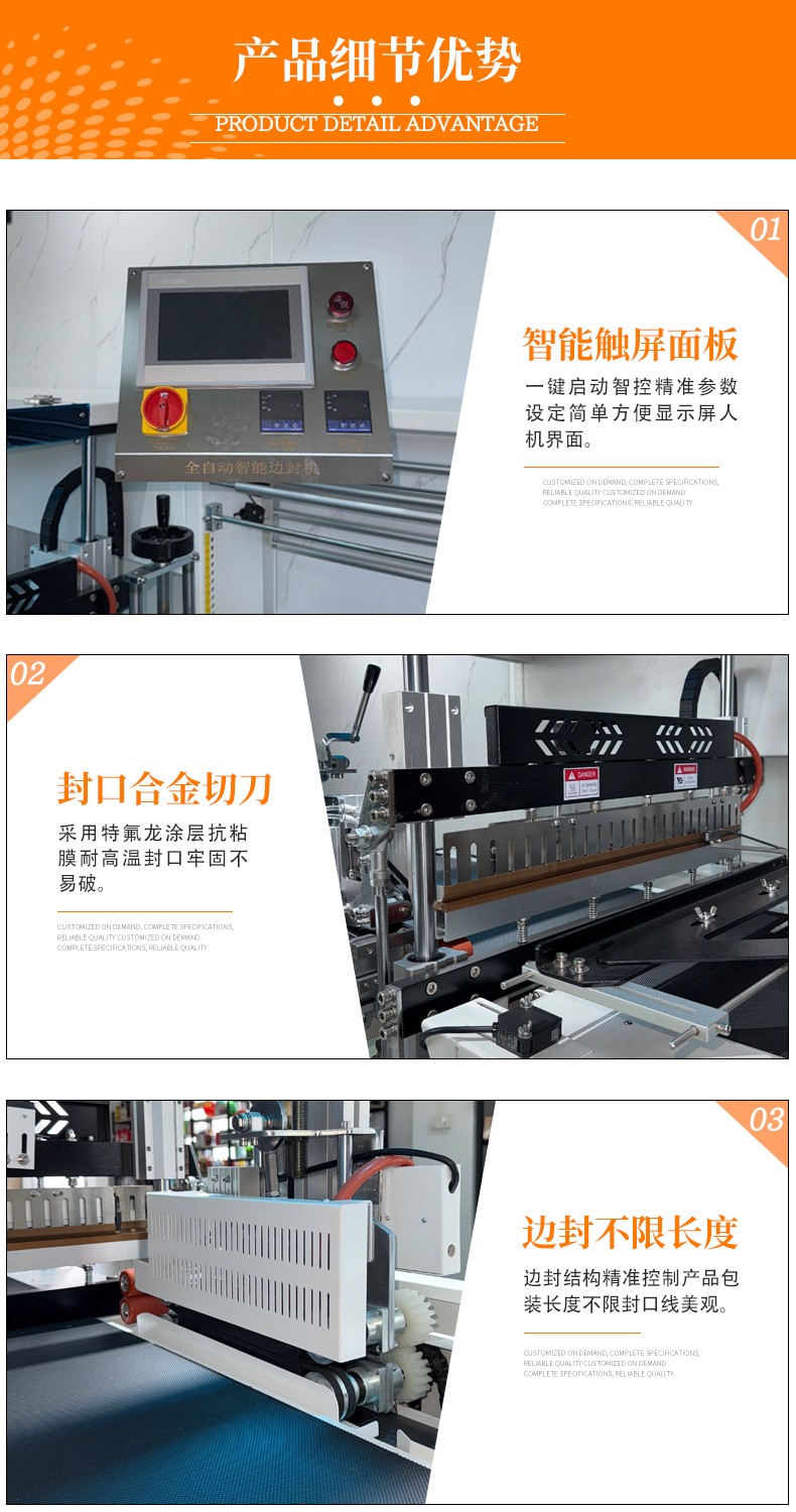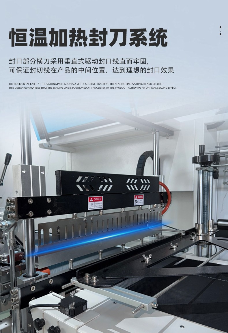 - 封口質(zhì)量好:采用恒溫合金封刀,鍍有特氟龍不粘表層,封口不焦化、不冒煙,且封口線直而牢固,平整美觀。