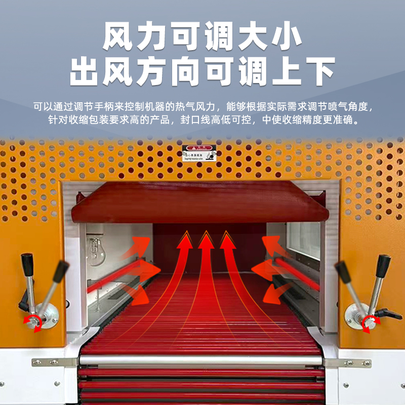 • 輸送系統穩定:輸送采用新型輥軸,外套進口纖維套管或耐高溫硅膠管,具有耐高溫、耐磨損、不燙膜、不變形等特點,可長久使用,且輥軸可選擇轉動或不轉動,以滿足不同產品的收縮要求。