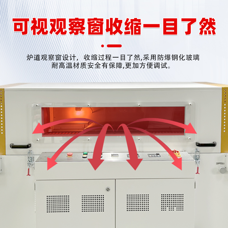 • 可視窗設計:設備設有可視窗,能夠讓操作人員清晰地觀察到收縮過程,便于及時發現和調整包裝過程中出現的問題,確保包裝質量。