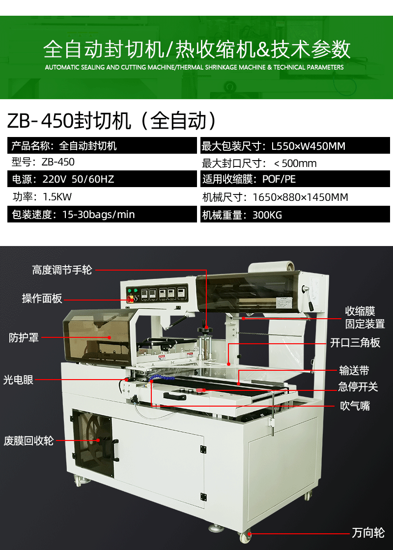 ZB-450封切機(jī) 自動套袋封切包裝機(jī) 熱縮膜包裝機(jī)