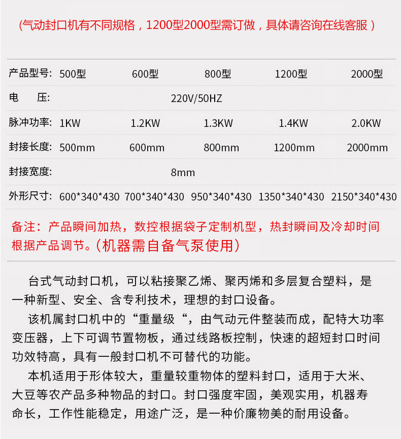 ZB-500型氣動封口機商用 臺式塑料薄膜全自動封口機