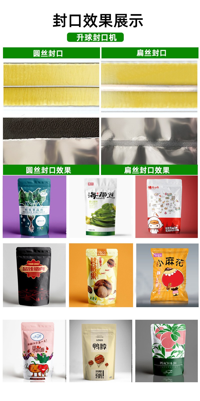腳踏封口機(jī)利用電氣脈沖技術(shù),使原有的工作時間從2-4秒縮短為0.2秒,是一種投資少,效益高,封口長度長,操作簡單,含專利的高效益封口設(shè)備,能廣泛用于食品,醫(yī)藥,土特產(chǎn),電器軟件,工廠,商店,服務(wù)行業(yè)。