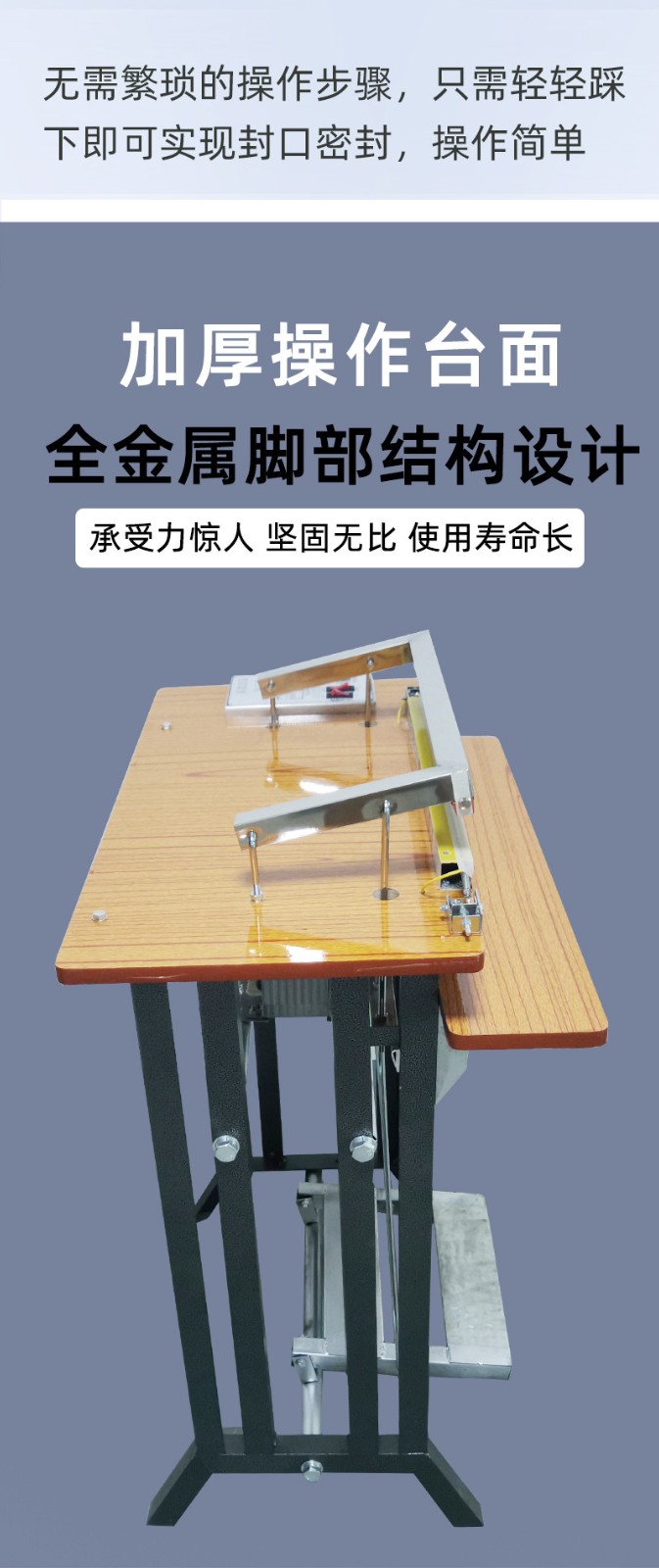 腳踏式封口機(jī)適用于各種塑料薄膜、復(fù)合薄膜及鋁塑薄膜的封合。產(chǎn)品簡(jiǎn)介 可廣泛應(yīng)用于食品、土特產(chǎn)、糖果、茶葉、醫(yī)藥、五金等行業(yè)。技術(shù)參數(shù) 產(chǎn)品優(yōu)點(diǎn) 1、本品適用于藥品,化妝品,保健品,食品,潤(rùn)滑油,農(nóng)藥,蜂蜜,瓜子,洗衣粉,大棗,調(diào)味品,雞精等