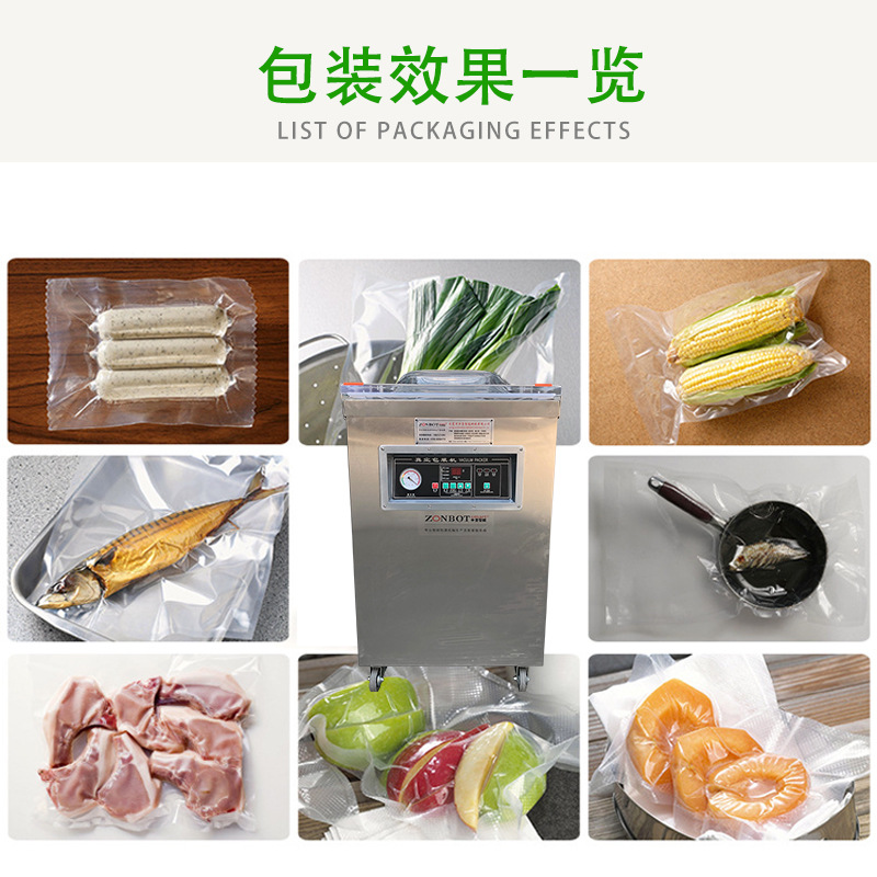 主要應用于同時需要抽真空及壓送氣體的場合,特別適用于易燃、易爆氣體的抽取和壓送及用于壓縮包裝羽絨被服、太空棉被服、枕頭等蓬松的物品,可縮小包裝空間及防潮防塵,降低儲藏及運輸費用。 相關信息 播報 編輯 真空包裝機包括食品真空包裝機都是由真空系統、抽充氣密封系統、熱壓封合系統、電器控制系統等組成。外抽式真空包裝機是將包裝袋內抽成低真空后,當即自動封口,由于袋內真空度高,殘留空氣極少,抑制細菌等微生物的繁殖,避免了物品氧化、霉變和腐敗