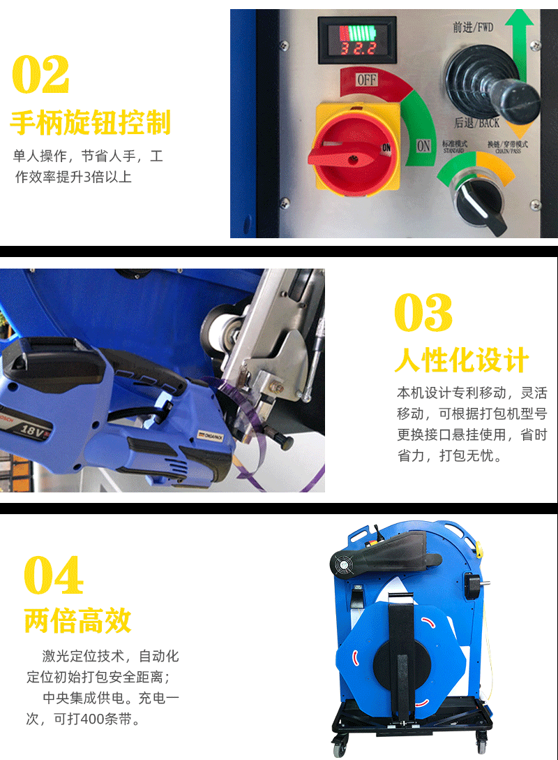 301全自動打包機采用優質材料制造,耐用性強,使用壽命長。同時,其獨特的外觀設計,簡潔大方,便于清潔和維護。