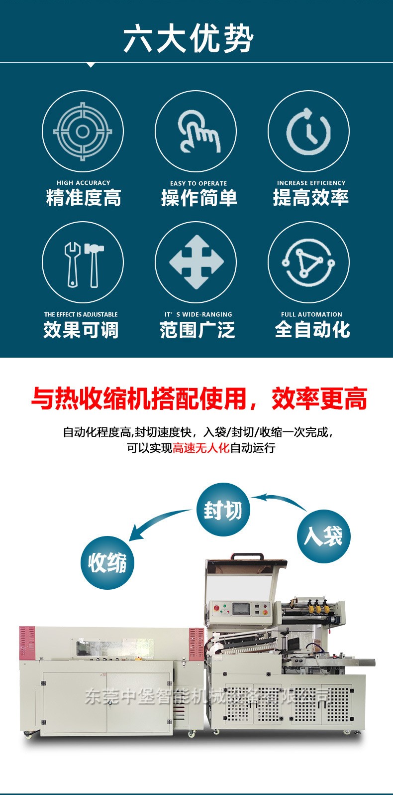 封切機是全自動無人化操作的包裝機,廣泛用于批量生產包裝的流水作業,工作效率高,自動送膜打孔,自動套膜封切,自動卷取廢料;只需手動調節導膜系統以及手動調節進料輸送平臺,適用不同寬度及高度的產品