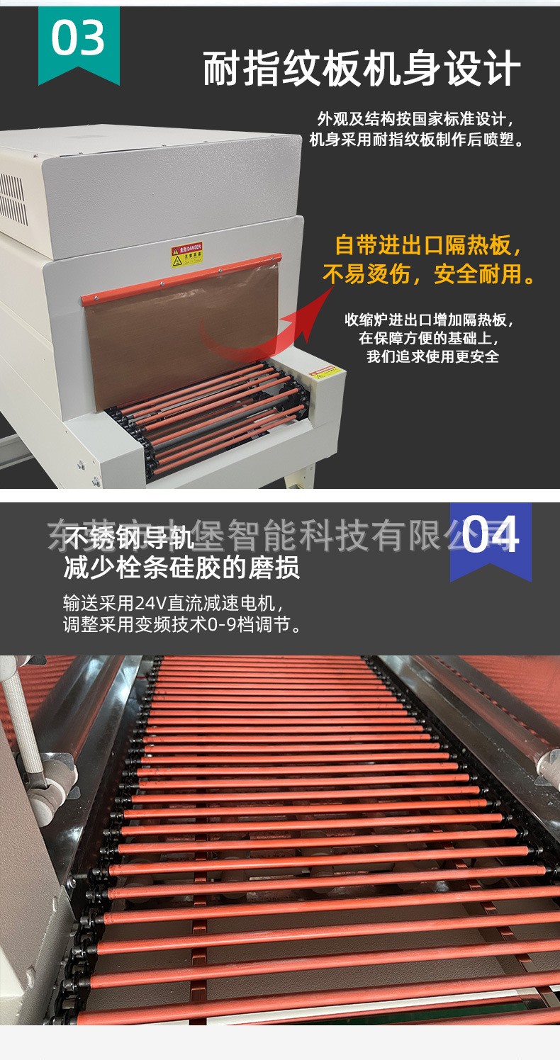 全自動熱收縮機作為熱收縮包裝機設備中最先進、?自動化程度最高的一款產品,?采用恒溫式特級鋁合金材料的切刀,?專門為POF膜片封切設計,?進一步提高了包裝的效率和效果。?此外,?不同類型的熱收縮機,?如4020熱收縮機和L型熱收縮機,?廣泛應用于飲料、?小商品等的收縮包裝,?滿足不同行業和產品的包裝需求。? 高速熱收縮包裝機則是一種可用于對產品進行全自動在線收縮包裝的設備,?通過光電對產品進行自動偵測,?支持自動進料和手工進料兩種模式,?采用對折薄膜并可對其它三邊進行封口,?進一步提升了包裝的自動化水平和